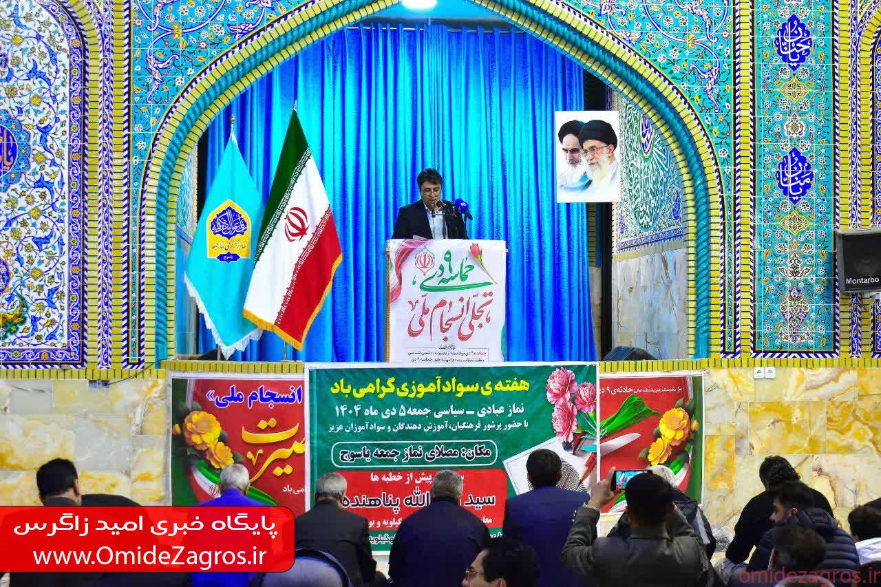 به گزارش پایگاه خبری امید زاگرس، سید روح‌الله پناهنده  در سخنرانی پیش از خطبه های نماز جمعه شهر یاسوج ضمن گرامیداشت هفته سوادآموزی، با تأکید بر نقش بنیادین سواد در...
